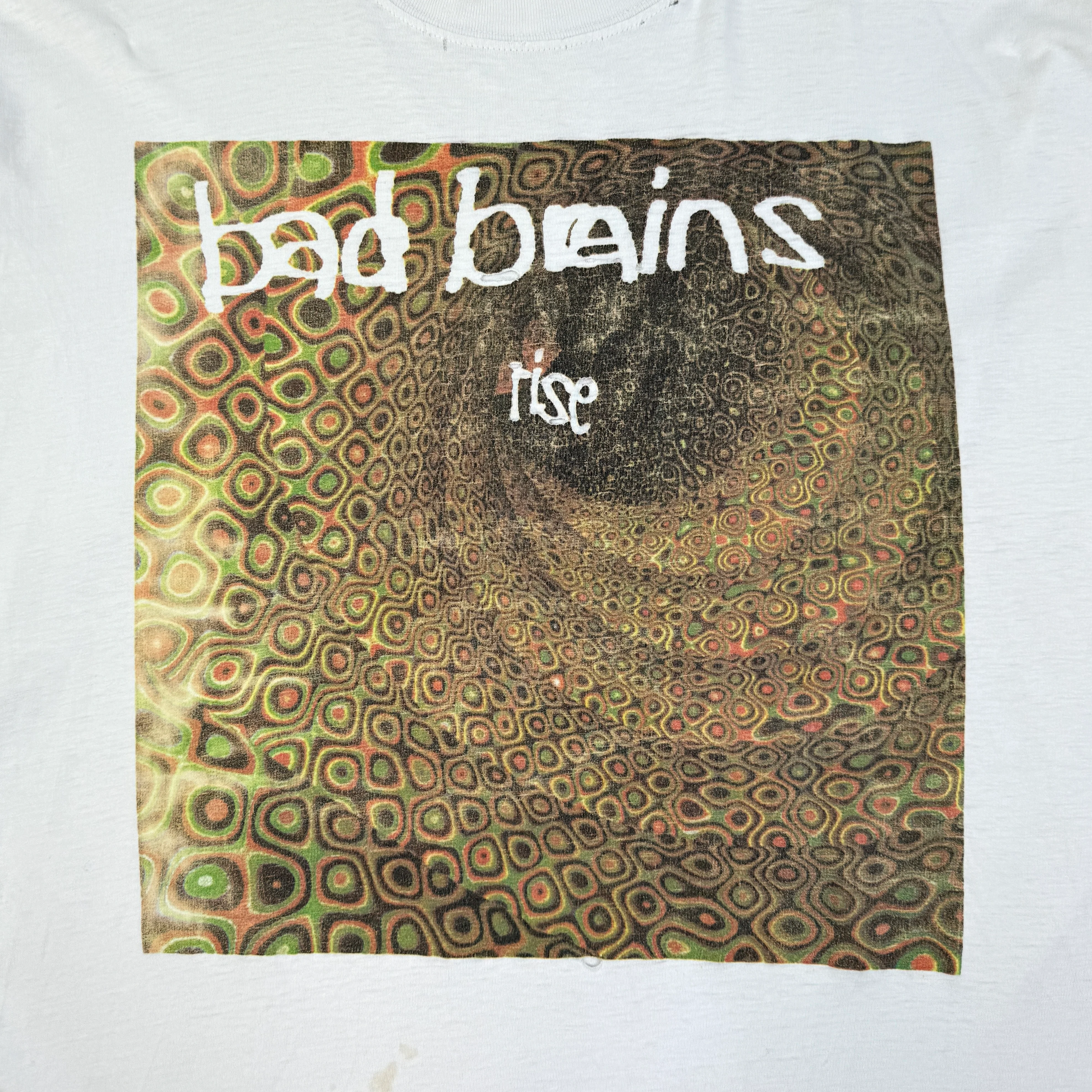 Wicked Bad Brains tour tee from 1993 following the Rise album release. Large full colour album graphic print in good detail on the front and tour detail back print on a lightweight white T-shirt.
